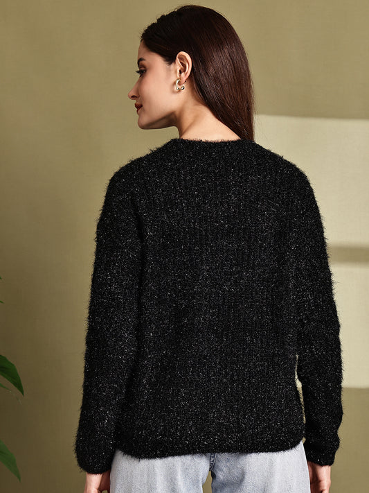 Acrylic Full Sleeve Black Drop-Shoulder Sweater