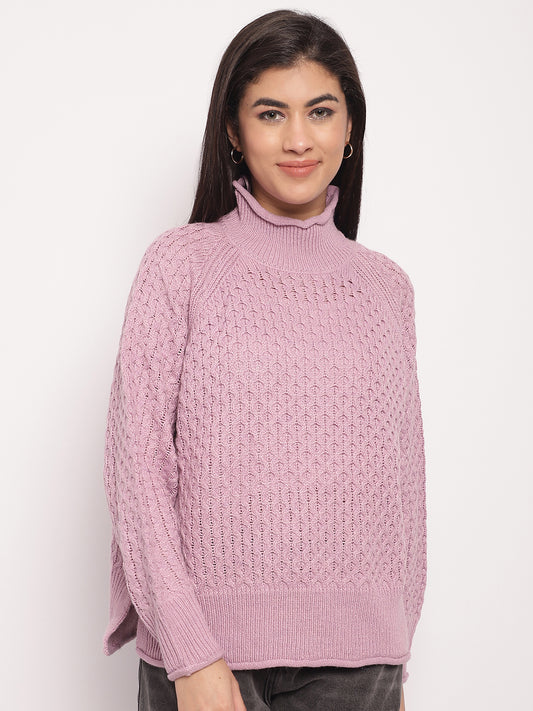 Acrylic High-Neck Full Sleeve Cable knit Purple Sweater