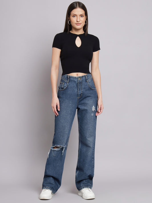 Acrylic Full Sleeve with V-Neck Short Ribbed Black cardigan