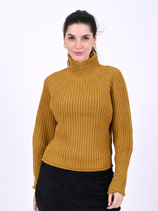 Acrylic High neck with Full sleeve cable knit Mustard sweater