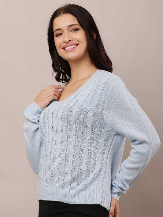 Acrylic Full Sleeve with V-Neck Sky Blue Sweater