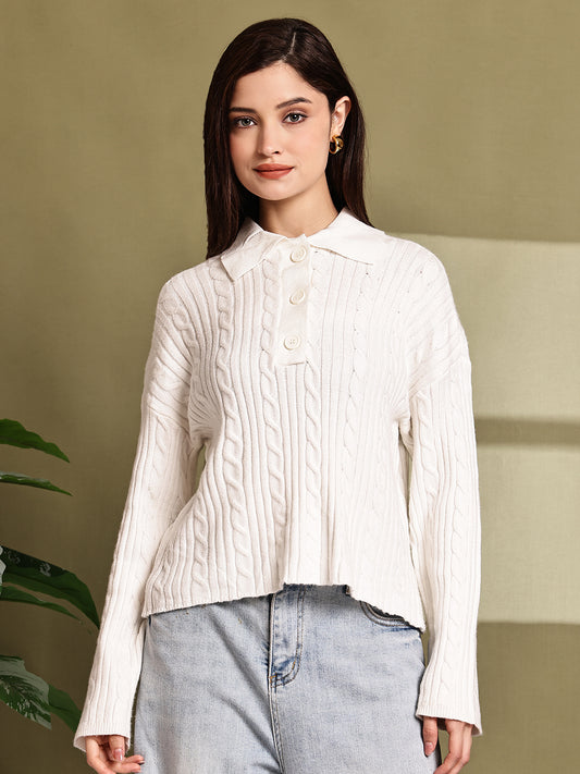 Acrylic Full Sleeve with White Cable Knit Polo Sweater