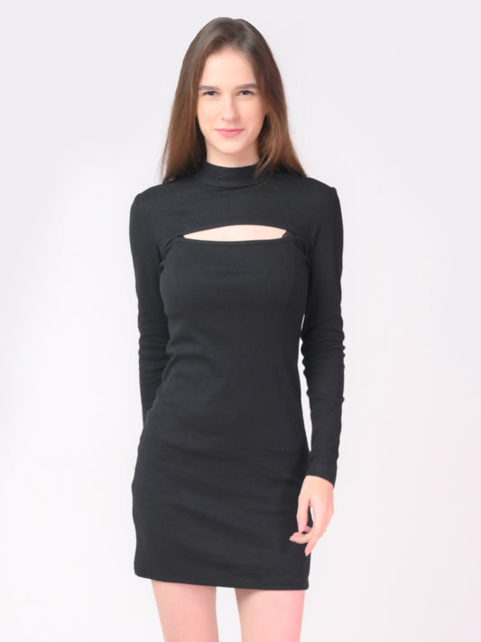 Acrylic Bodycon Full Sleeve Ribbed Black Dress