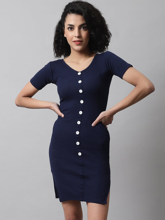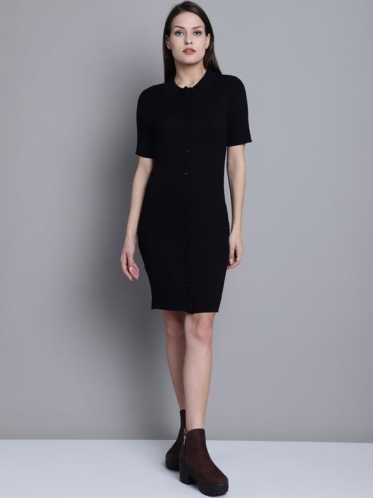 Viscose Half Sleeve Short Fitted Jersey Black Dress