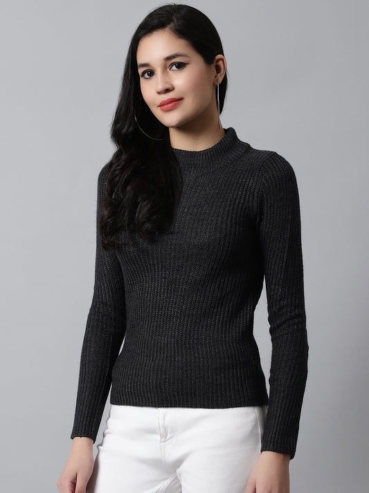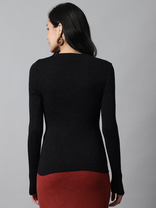 Acrylic Turtle Neck Rib Knit Metallic Thread Sweater