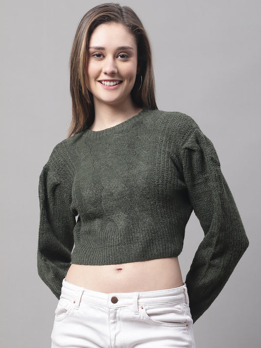 Acrylic Turtle Neck Full Sleeve Crop Green Sweater