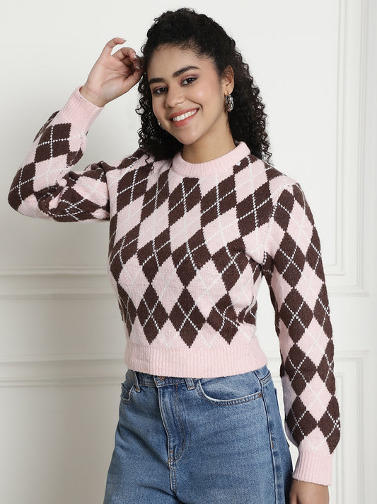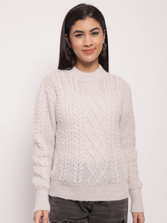 Acrylic Round Neck Full Sleeve Cable Knit Light Grey Sweater