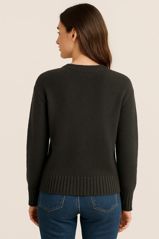 Acrylic Full Sleeve with Round Neck Black Loose Fit Sweater