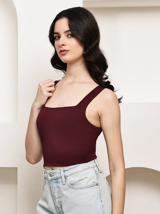 Polyester Square Neck Stretch Tank Top – Wine