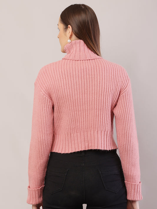 Acrylic Full Sleeve with High-Neck Ribbed Peach Sweater