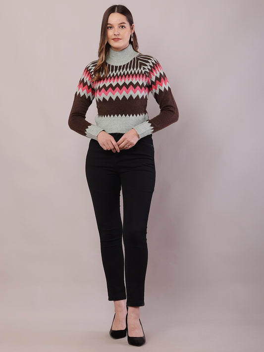 Acrylic Full Sleeve with High-Neck Multicolour Sweater