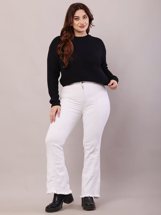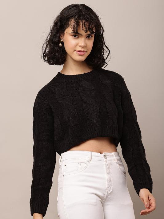 Acrylic Full Sleeve with Round Neck Black Crop Sweater