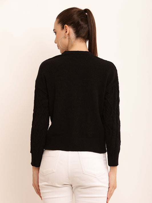 Viscose Full Sleeve with Round Neck cable knit Black sweater