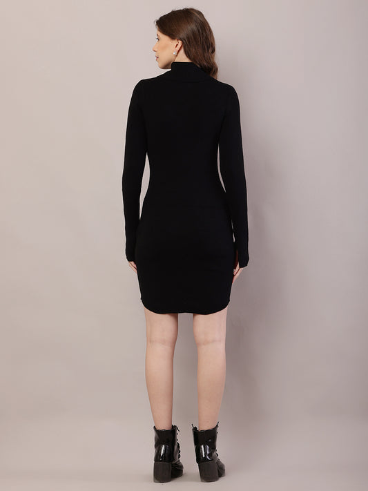 Viscose Full Sleeve with High-Neck Ribbed Black Bodycon Dress