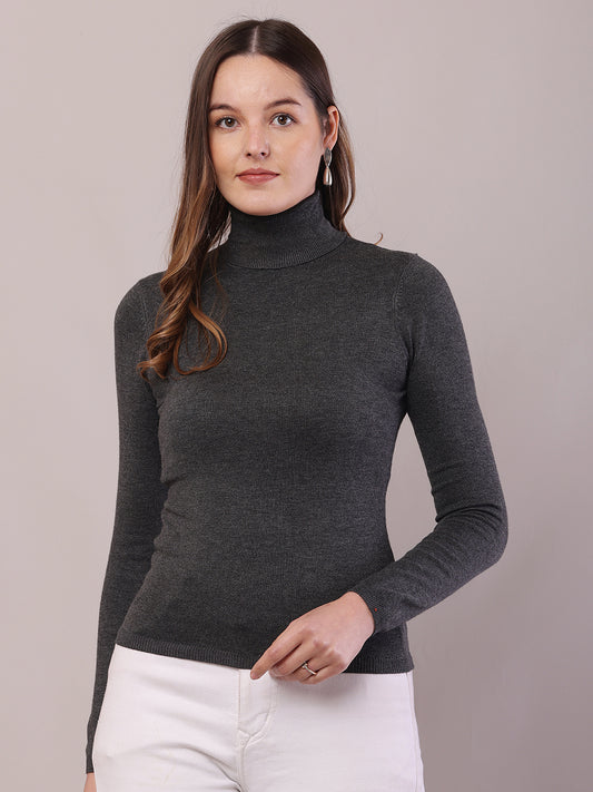 Viscose Full Sleeve with High-Neck Dark Grey Sweater