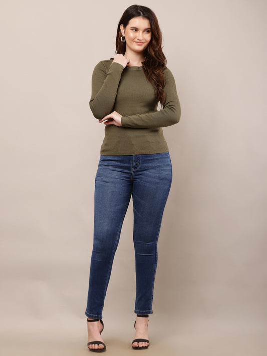 Viscose Full Sleeve with Round Neck Dark Green Sweater