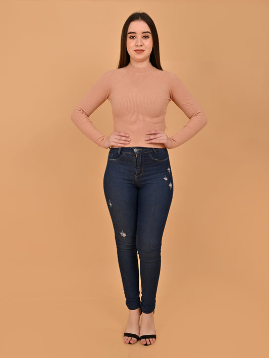 Viscose Full Sleeve with Turtle Neck Peach Sweater