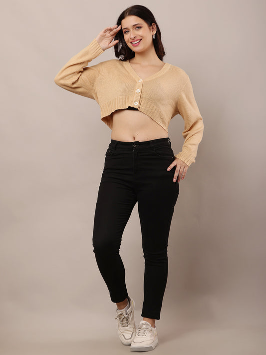 Acrylic Full Sleeve with V-Neck Beige Cardigan