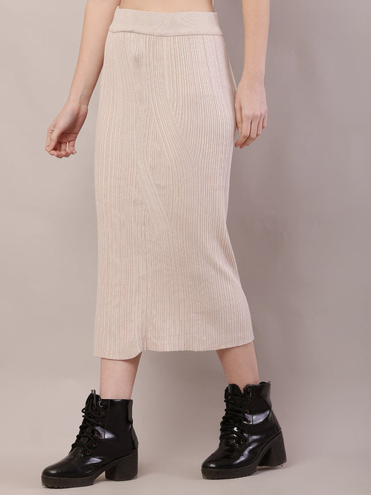 Acrylic Knitted Ribbed A-line Beige Skirt