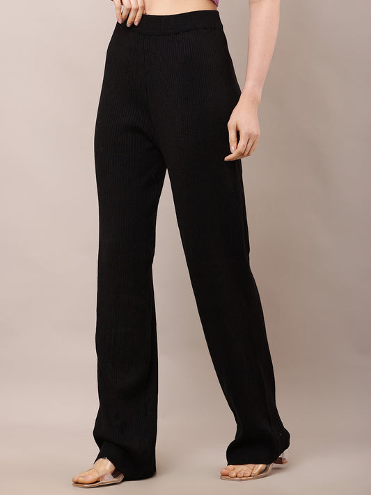 Acrylic High-Rise with Elastic waist Ribbed Winter Black Trouser