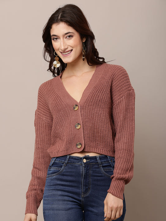 Acrylic Full Sleeve with V-Neck Peach Cardigan