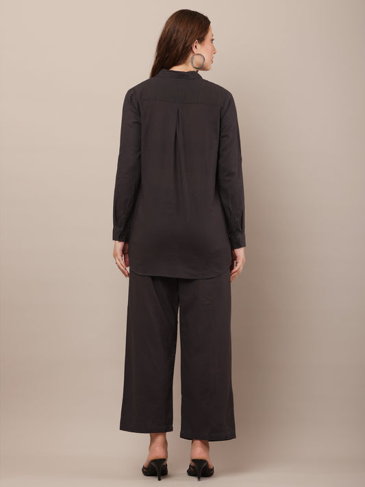 Black with Shirt Collar Long Sleeves shirt With Trouser Co-Ord Set