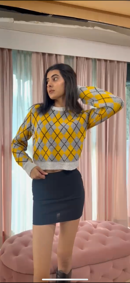 Checkered Round Neck Sweater
