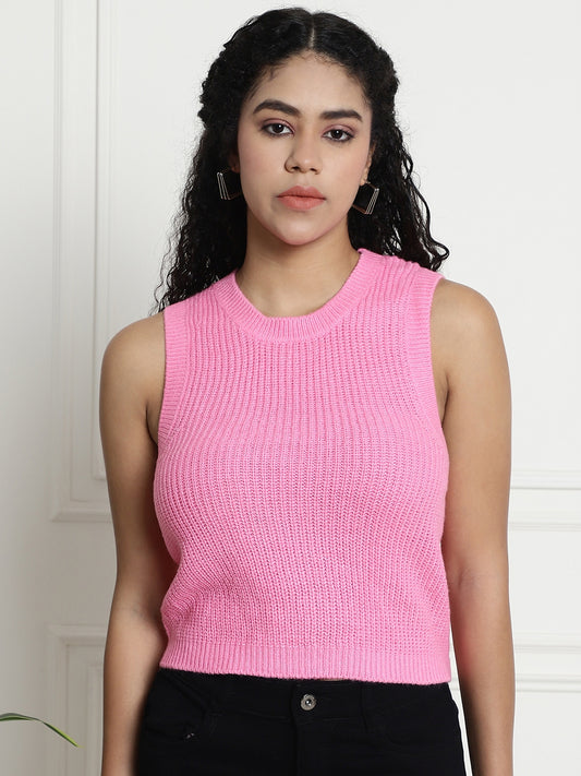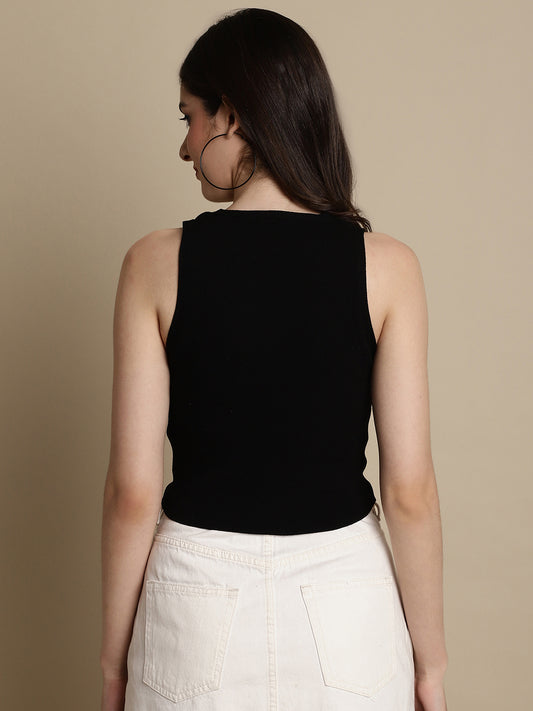 Fitted Viscose Round Neck Sleeveless Black Tank Top