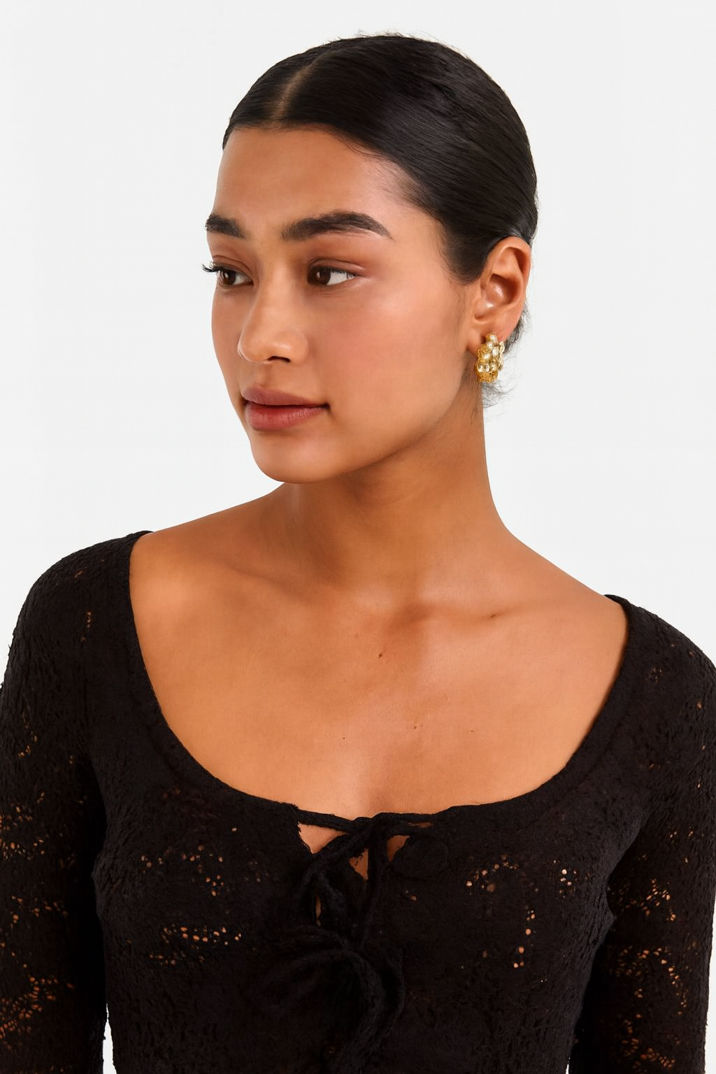 Acrylic Brown Knitted Tie-Front Sweater | Full Sleeve Crochet Style Sweater