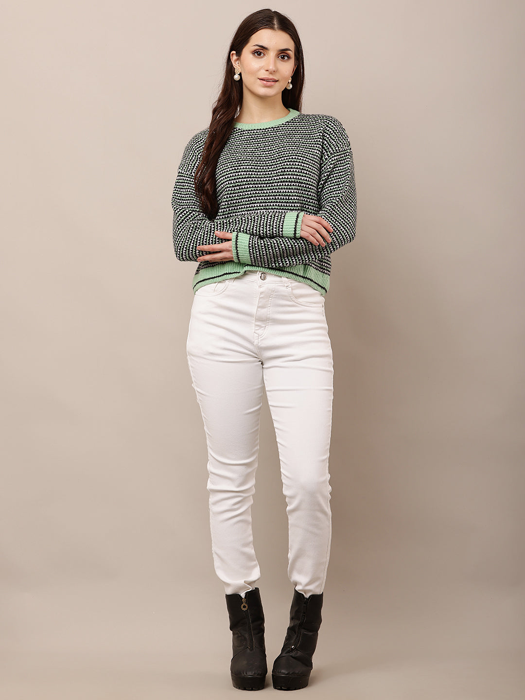 Acrylic Full Sleeve with Round Neck waist loose Green Sweater