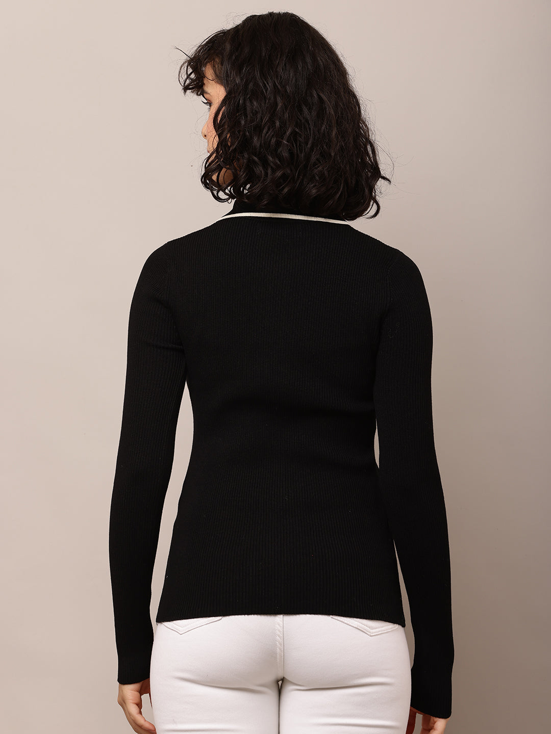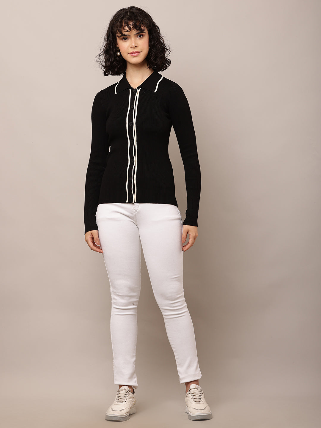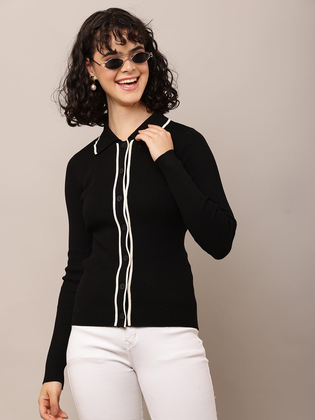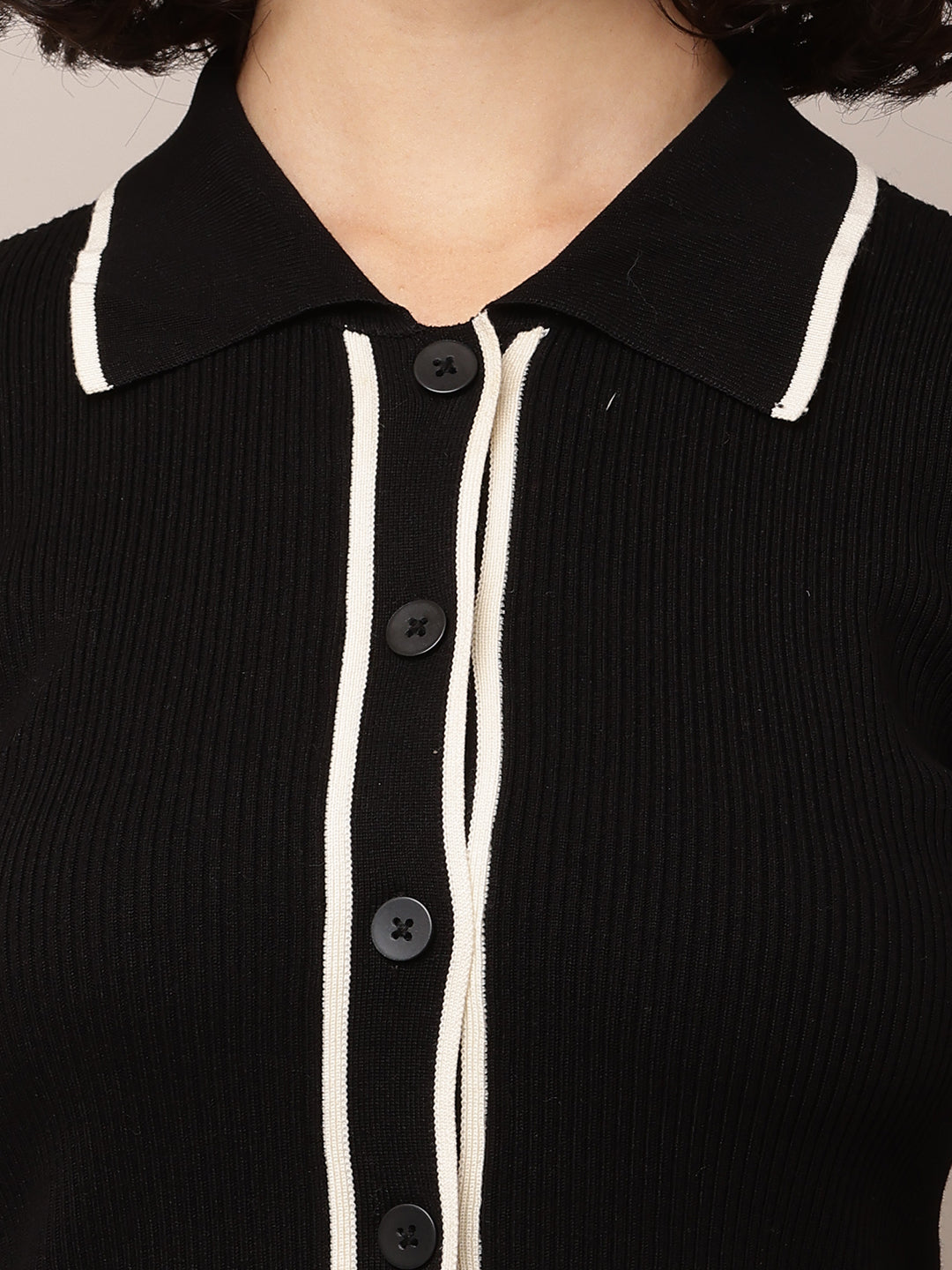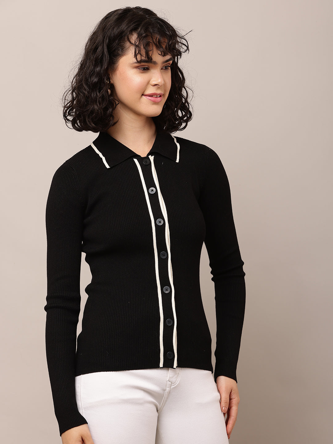 Acrylic Full Sleeve with Shirt Collar Ribbed Black Shirt