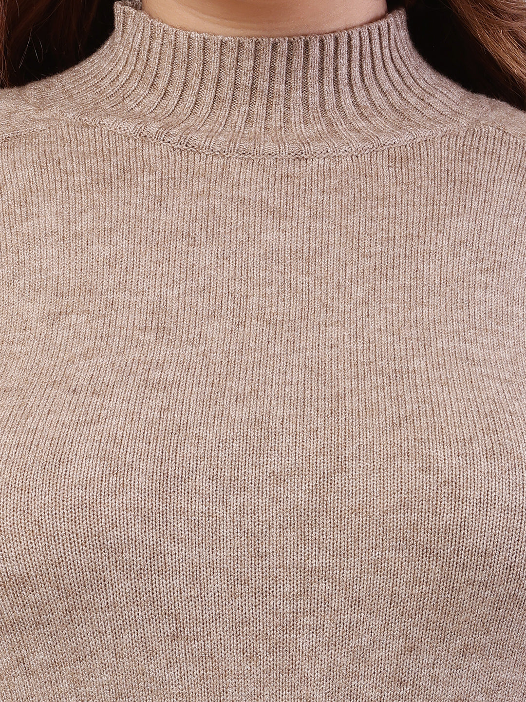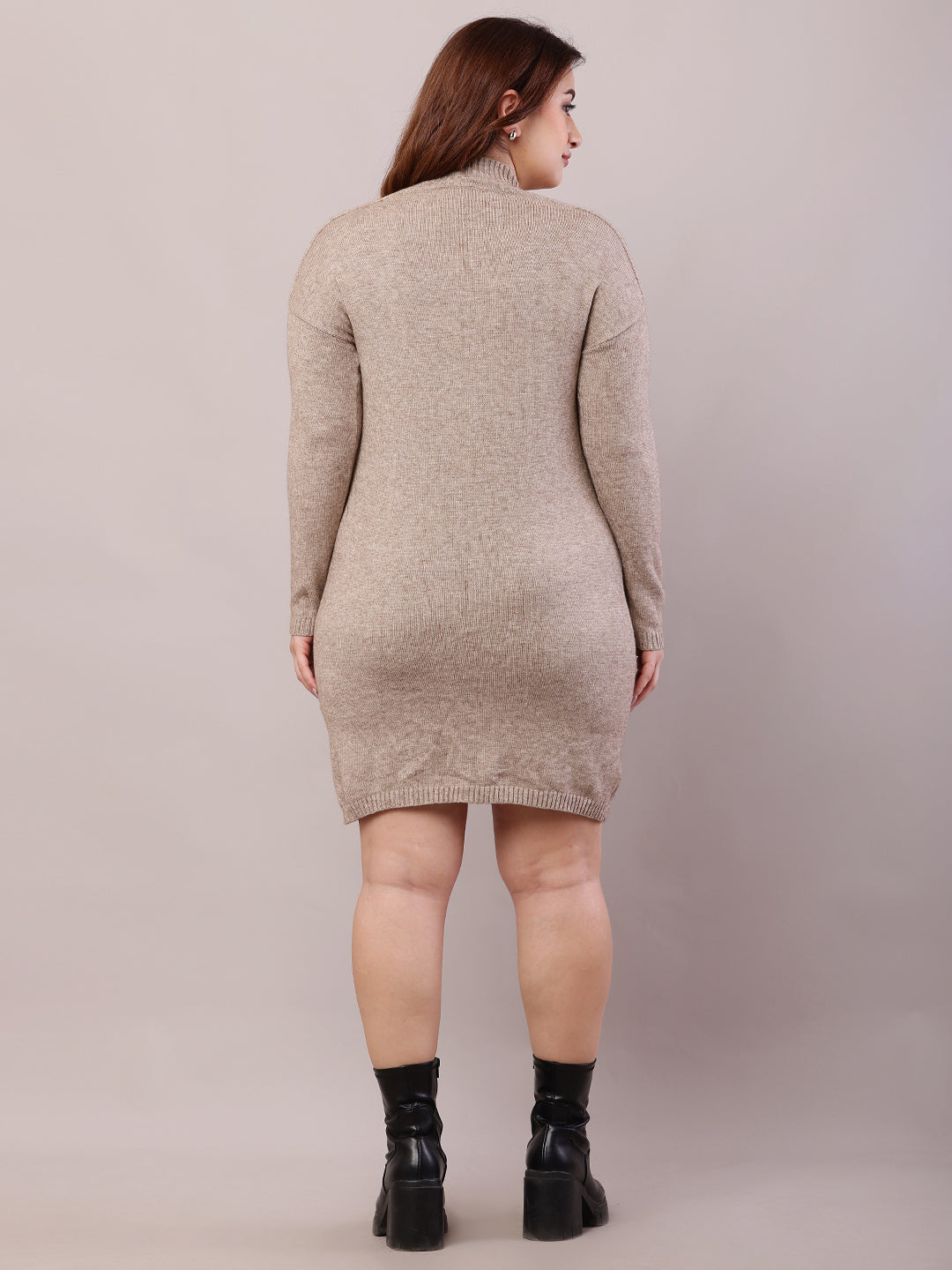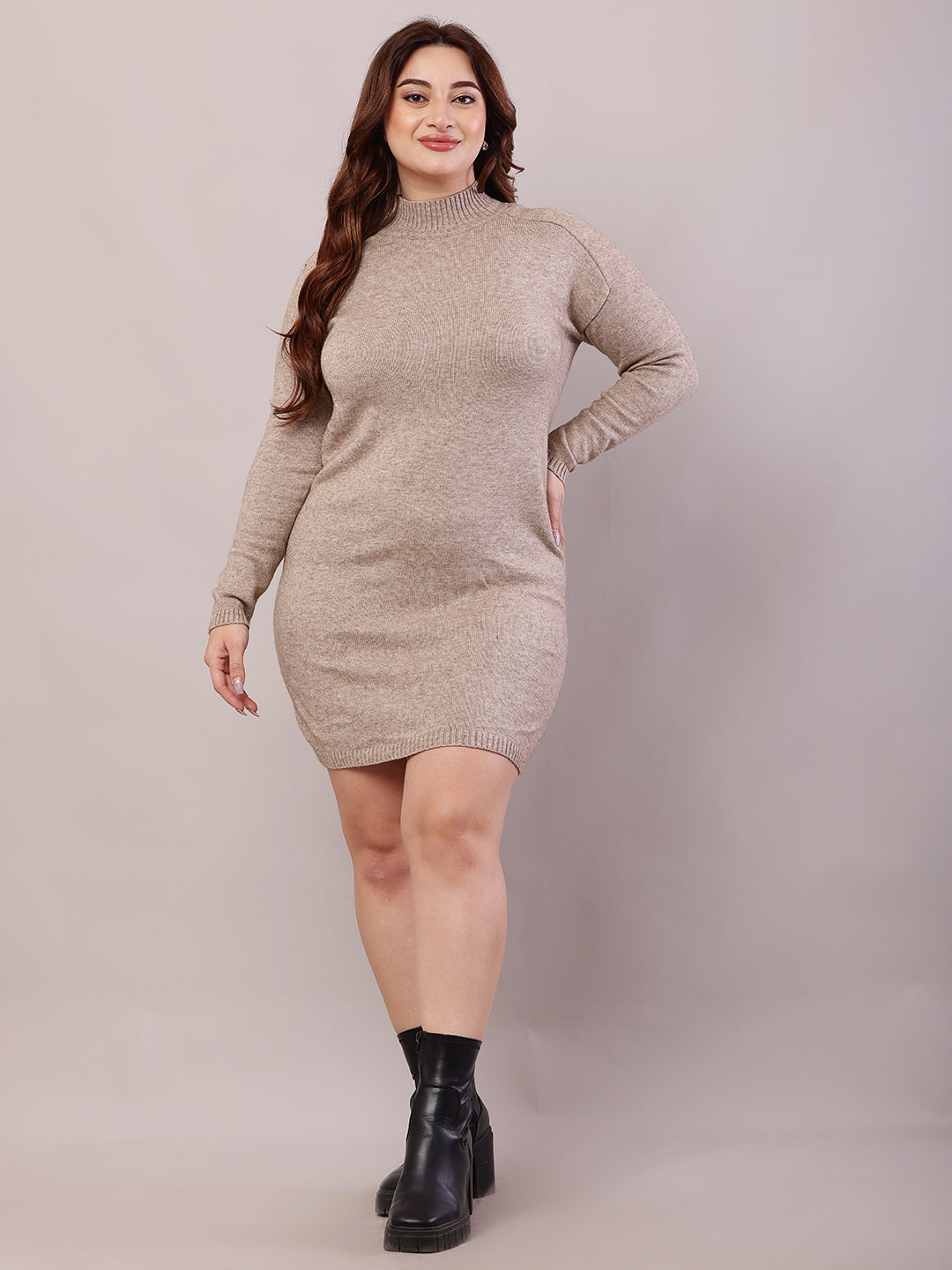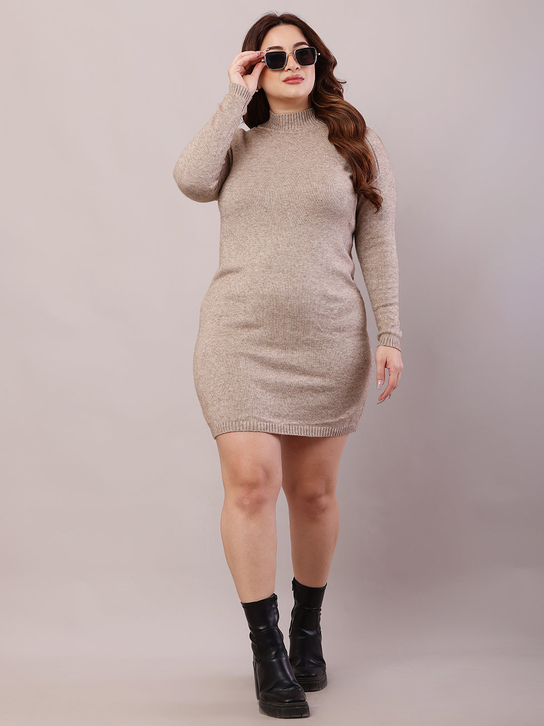 Acrylic Full Sleeve with Turtle Neck Beige Bodycon Dress
