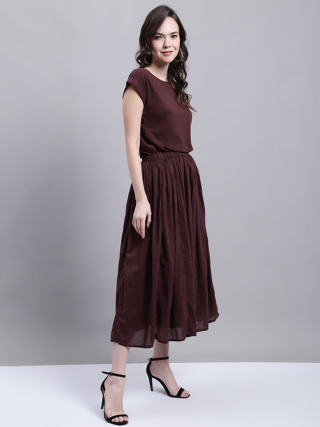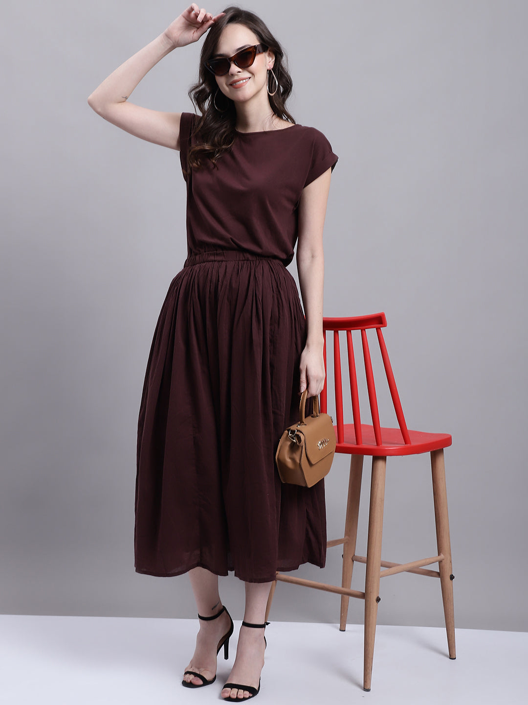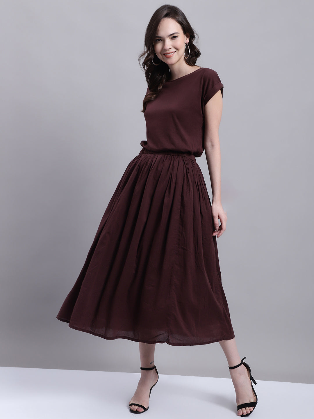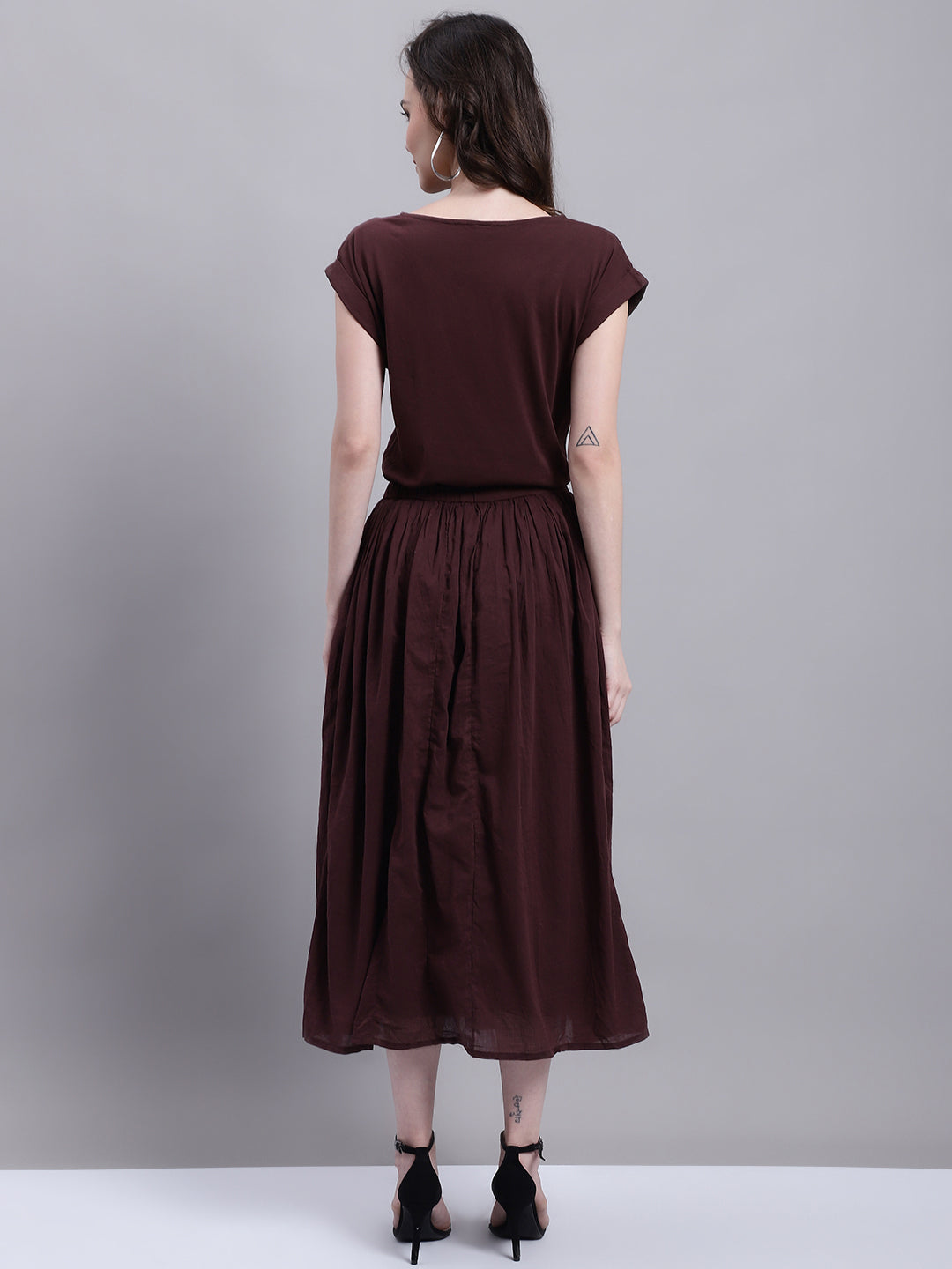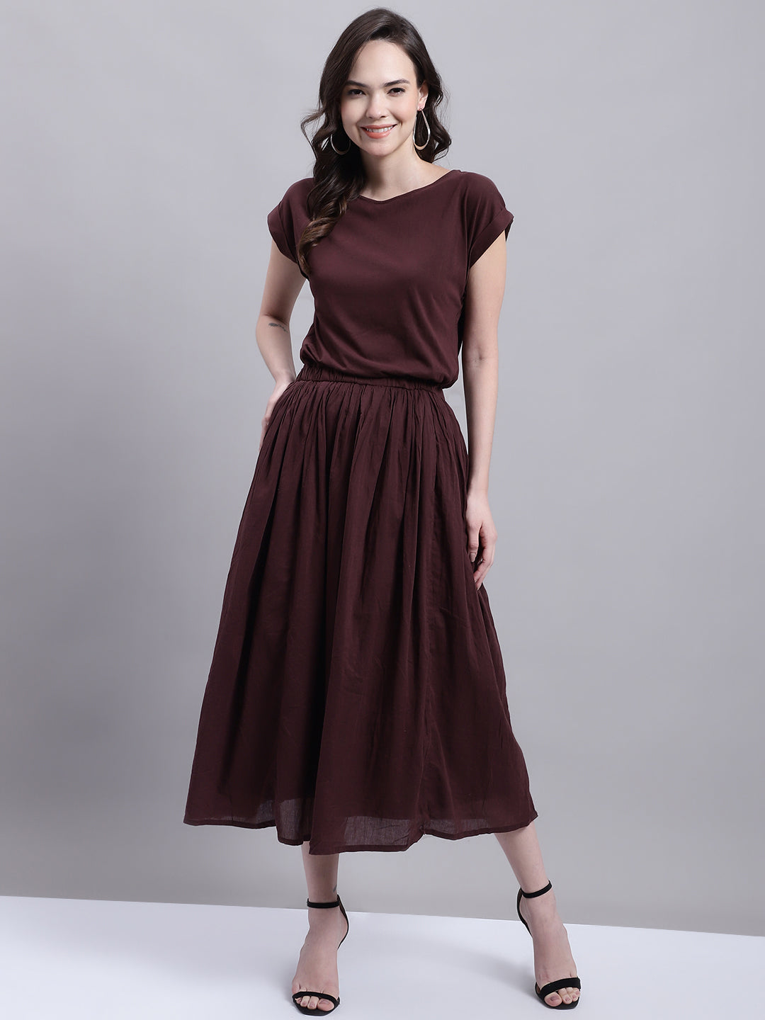 Introducing NoBarr best-selling style, back just in time for spring and summer, now available in a captivating dark brown shade. This versatile piece is perfect for your casual everyday wardrobe. With its round neck and short sleeves, it exudes effortless style and comfort. The solid A-line silhouette ensures a flattering fit for all body types.Crafted from a high-quality blend of 100% Cotton, this dress offers a combination of durability and flexibility. It is designed to keep you comfortable and at ease throughout the day, making it ideal for any occasion. Whether you choose to pair it with sandals for a relaxed look or dress it up with sneakers and a denim jacket, you can effortlessly achieve a cute and comfortable ensemble.Invest in this must-have piece and experience the perfect blend of style, comfort, and versatility. Elevate your wardrobe with this statement dark brown dress and embrace the upcoming seasons in fashion-forward attire that will leave you feeling confident and chic.